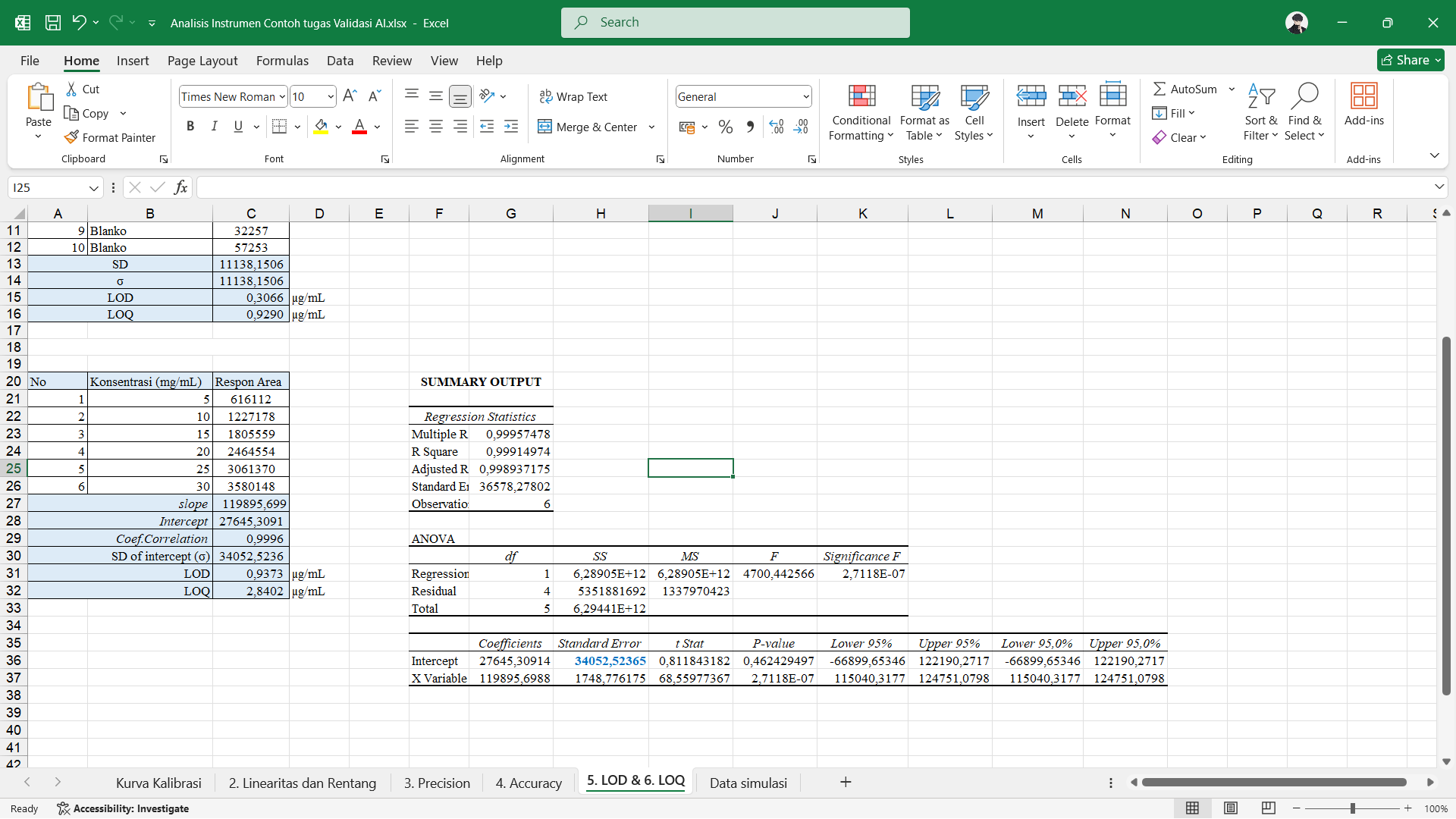 Meliputi Kurva Kalibrasi, Linearitas Rentang, Presisi, akurasi , LoD dan QoD serta Data simmulasi