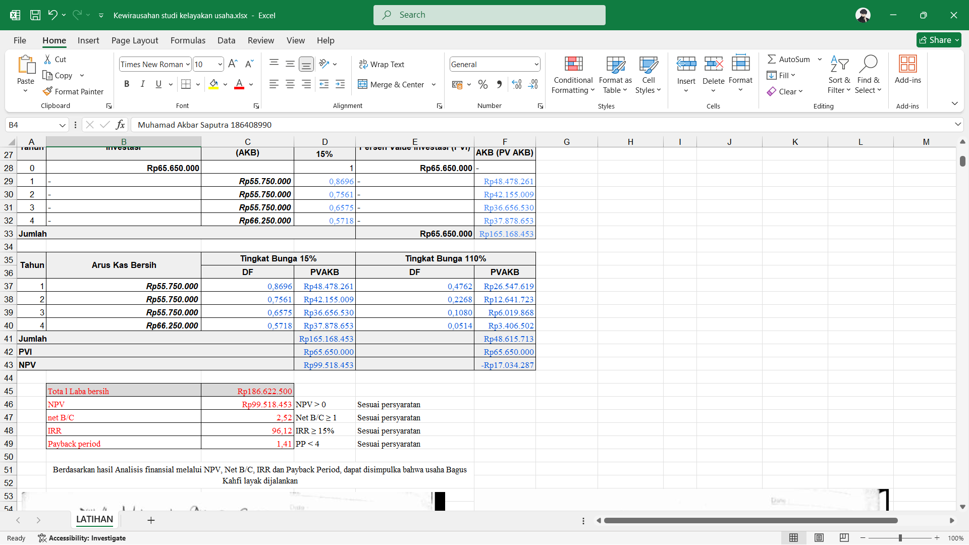- [Ex - Task] Excell Kelayakan usaha - Kewirausahaan